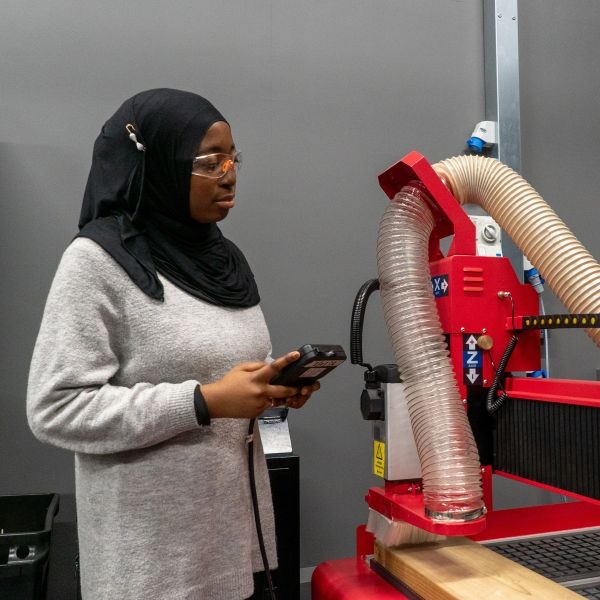 The building offers a hub for learning and innovation, with project studios, digital and environmental laboratories, an engineering and fabrication workshop, a CAD suite, and creative breakout spaces. Designed for hands-on learning, these facilities enable students to experiment, design, and develop solutions to real-world challenges in sustainability, computing and the built environment.